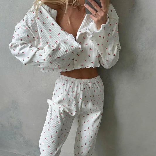 Dwuczęściowa piżama z ozdobną falbanką Pyxis