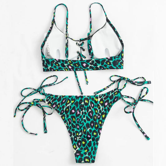 Dwuczęściowy strój kąpielowy z motywem panterki i ozdobnym wiązaniem Horologium