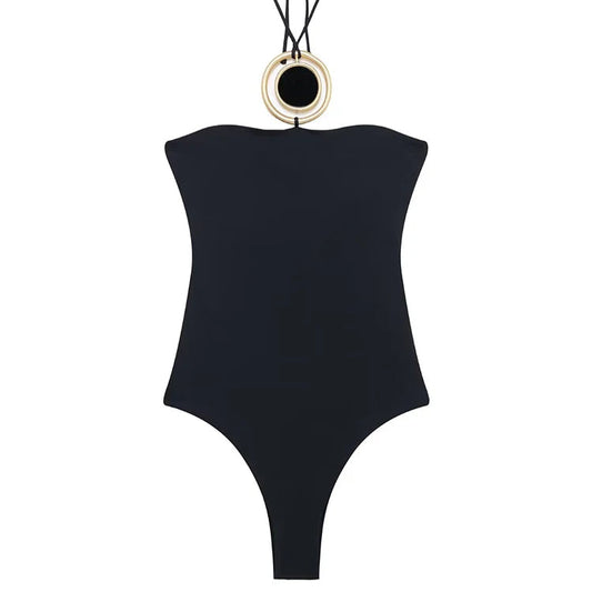 Jednoczęściowy strój kąpielowy z ozdobnymi klamerkami Carina