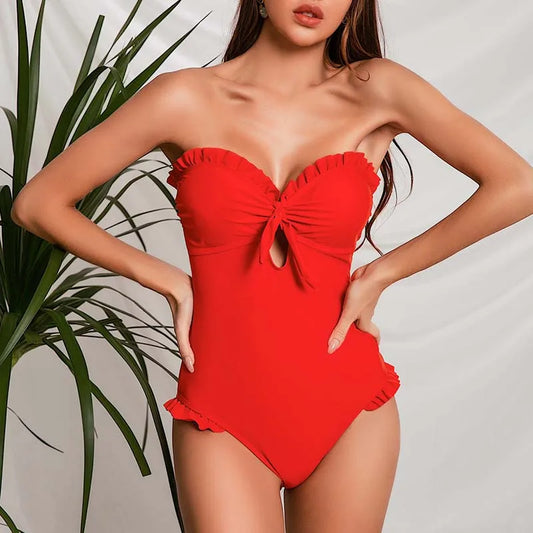 Jednoczęściowy strój kąpielowy z ozdobną falbanką Bootes