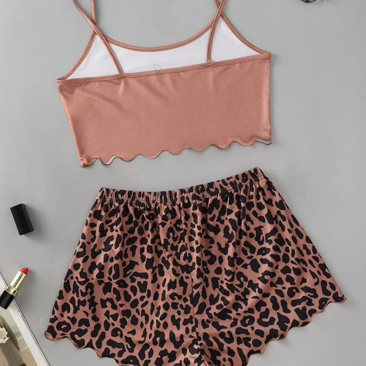Dwuczęściowa piżama na ramiączkach w panterkę Horologium