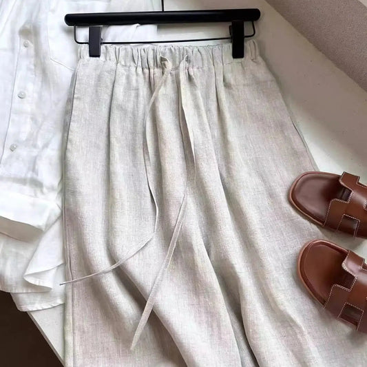 Lniano bawełniane luźne spodnie z wysokim stanem Delphinus