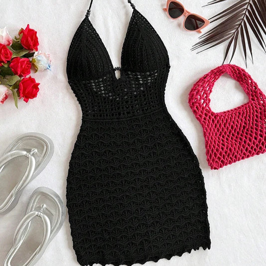 Krótka szydełkowa sukienka plażowa wiązana na szyi Crater
