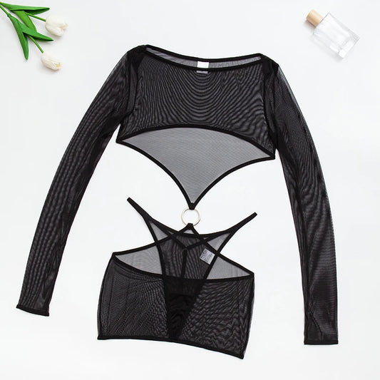 Prześwitująca sukienka bieliźniana ze stringami w zestawie Andromeda