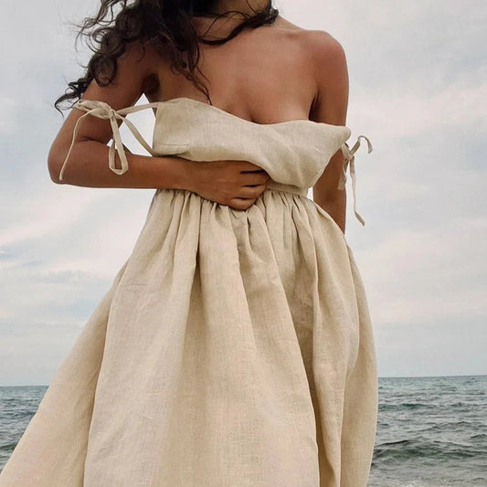 Szydełkowa sukienka plażowa z odkrytymi ramionami i wycięciem Lupus