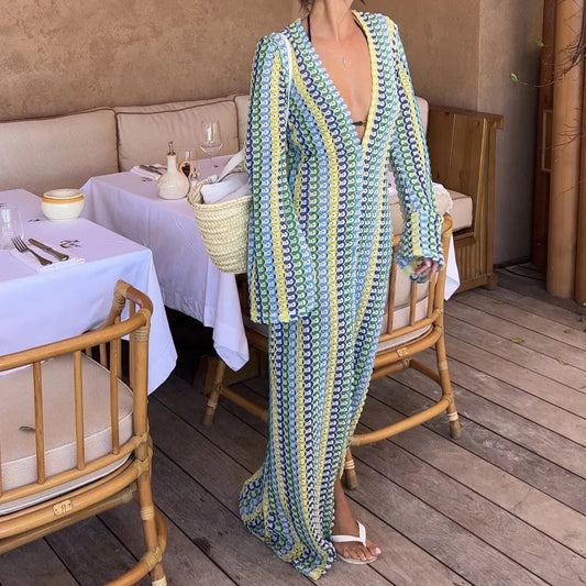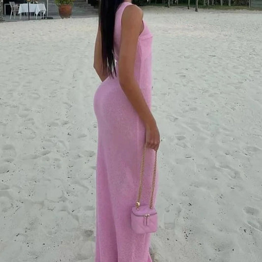 Długa prześwitująca sukienka plażowa z kieszonkami Serpens